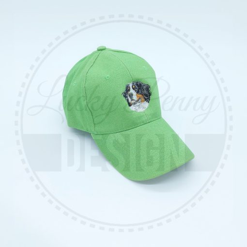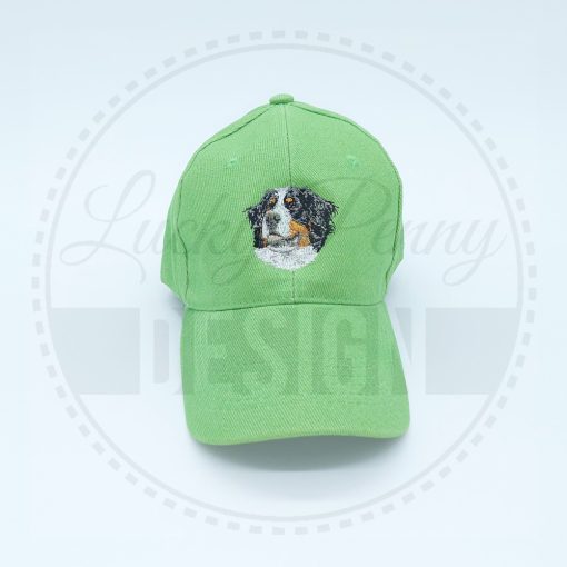 Berni pásztorkutya mintával hímzett borsózöld baseball sapka.