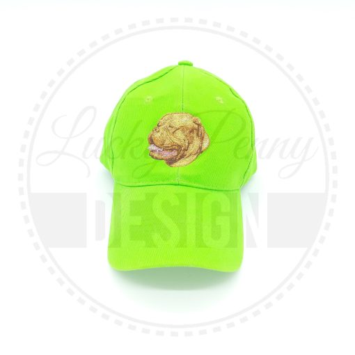 Bordeaux-i dog mintával hímzett almazöld színű baseball sapka.