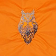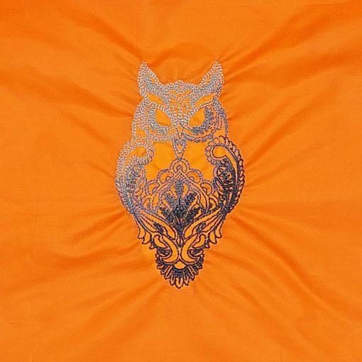 Hímzett háromszínű bagoly mintával díszített borostyán bevásárló szatyor.