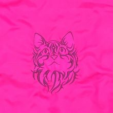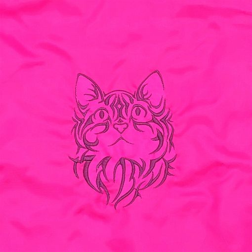 Hímzett felfelé néző macska mintával díszített neon rózsaszín bevásárló szatyor.