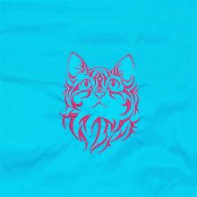 Hímzett felfelé néző macska mintával díszített türkiz hátizsák.