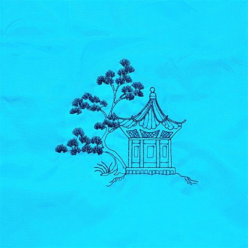 Hímzett pagoda mintával díszített türkiz hátizsák.