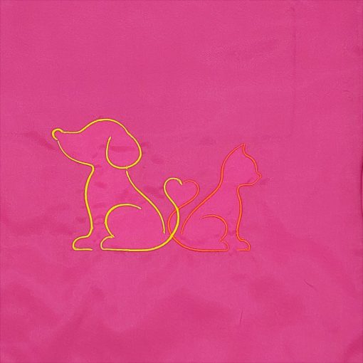 Hímzett kutya-macska barátság mintával díszített fukszia hátizsák.