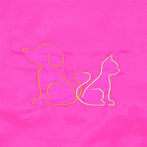 Hímzett kutya-macska barátság mintával díszített neon rózsaszín hátizsák.