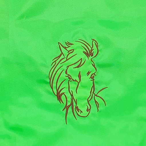 Hímzett ló portré mintával díszített almazöld hátizsák.