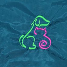 Hímzett kutya-macska ölelés mintával díszített petrol kék hátizsák.
