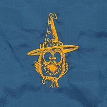 Hímzett varázsló bagoly mintával díszített petrol kék hátizsák.